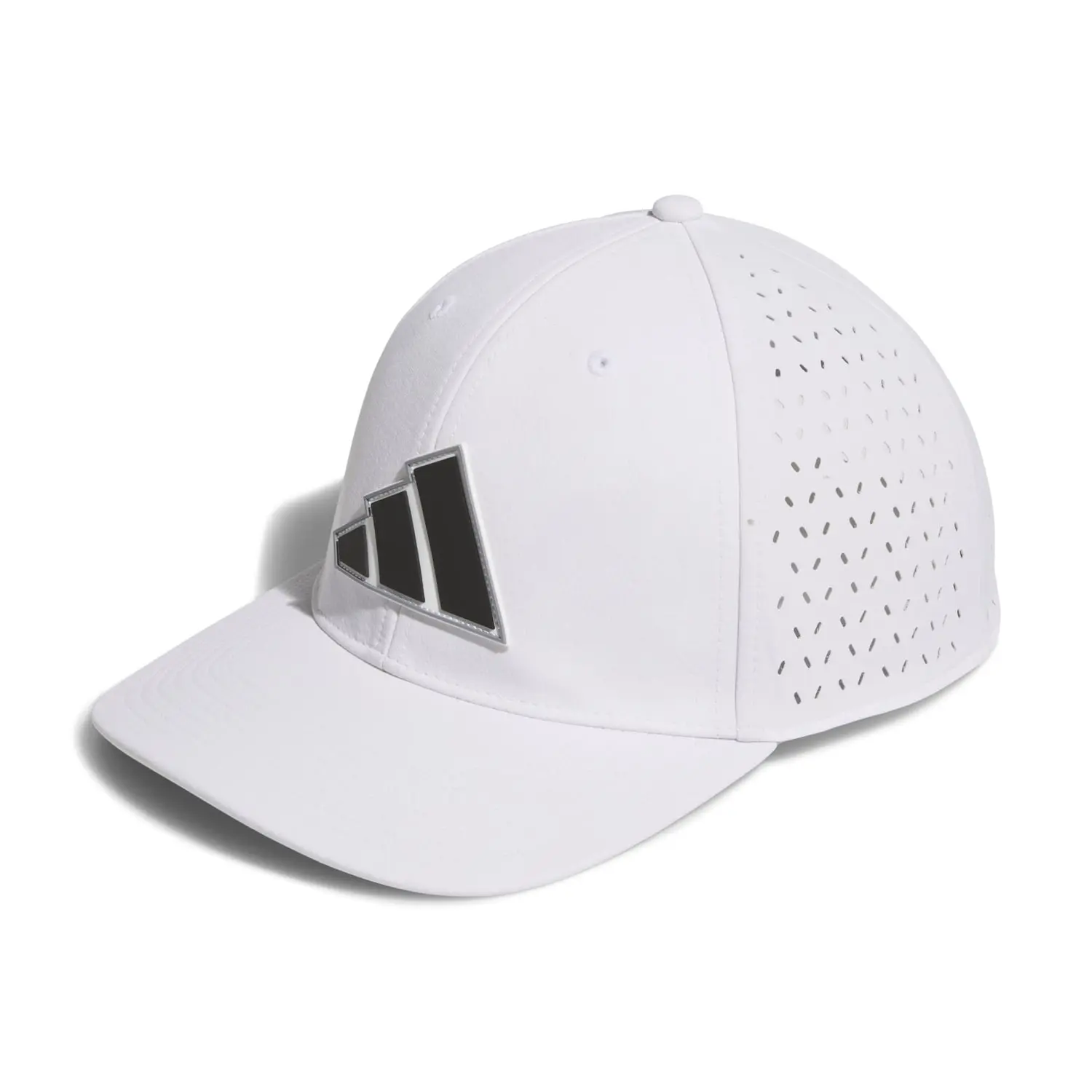 Stay cool and focused on the course with the Hydrophobic 2.0 Tour Cap by adidas. Designed for high-performance play, this golf hat combines a breathable construction with water-repellent, stretchy fabric to keep you comfortable through every swing. The vented side and back panels ensure airflow, while the adjustable snapback closure allows for a customised fit. Finished with a BOS patch on the side, it's an innovative blend of classic style and sustainable design, crafted in part from recycled materials to reduce environmental impact.