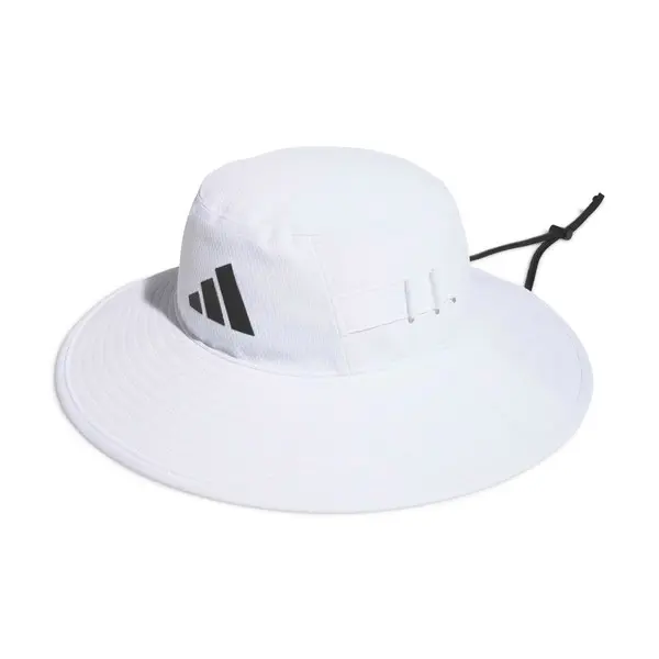 The durable dobby fabric and Climacool technology help you stay cool and dry by wicking away sweat during warm-weather play. An adjustable chin strap provides a secure fit, even in windy conditions, while the bold front performance branding gives a clean adidas look. Tee holders on the side add a practical touch for quick access between shots.