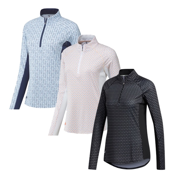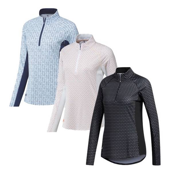 Featuring UPF 50+ for sun blocking and a zip mock collar provides a modern golf silhouette and feminine look both on and off the course.