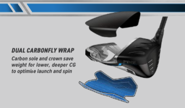 The crown and sole feature a lightweight carbon fibre construction, saving a total of 5 grams (3.5g in the sole, 1.5g in the crown). This saved weight is strategically redistributed to the back weight and perimeter, lowering the centre of gravity and increasing MOI for improved forgiveness and launch characteristics.