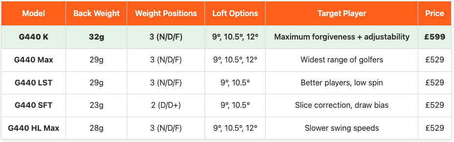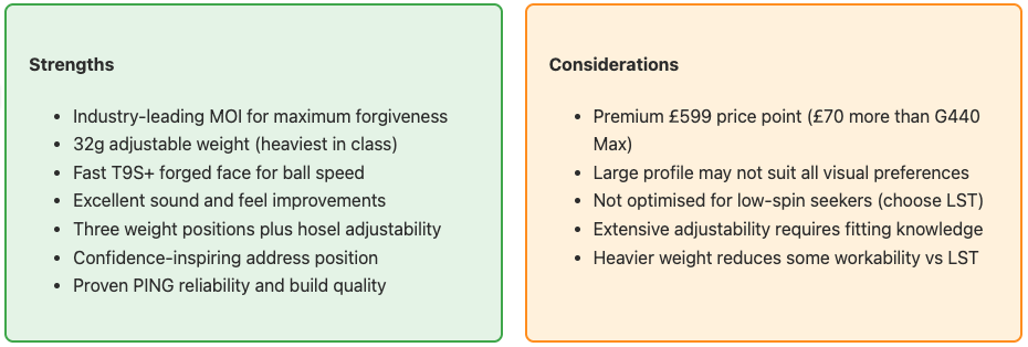However, golfers on tighter budgets or those who already hit their current driver consistently might find the G440 Max delivers 95% of the performance at a more palatable £529 price point. The G440 K shines brightest for players whose inconsistent driver performance regularly costs strokes.