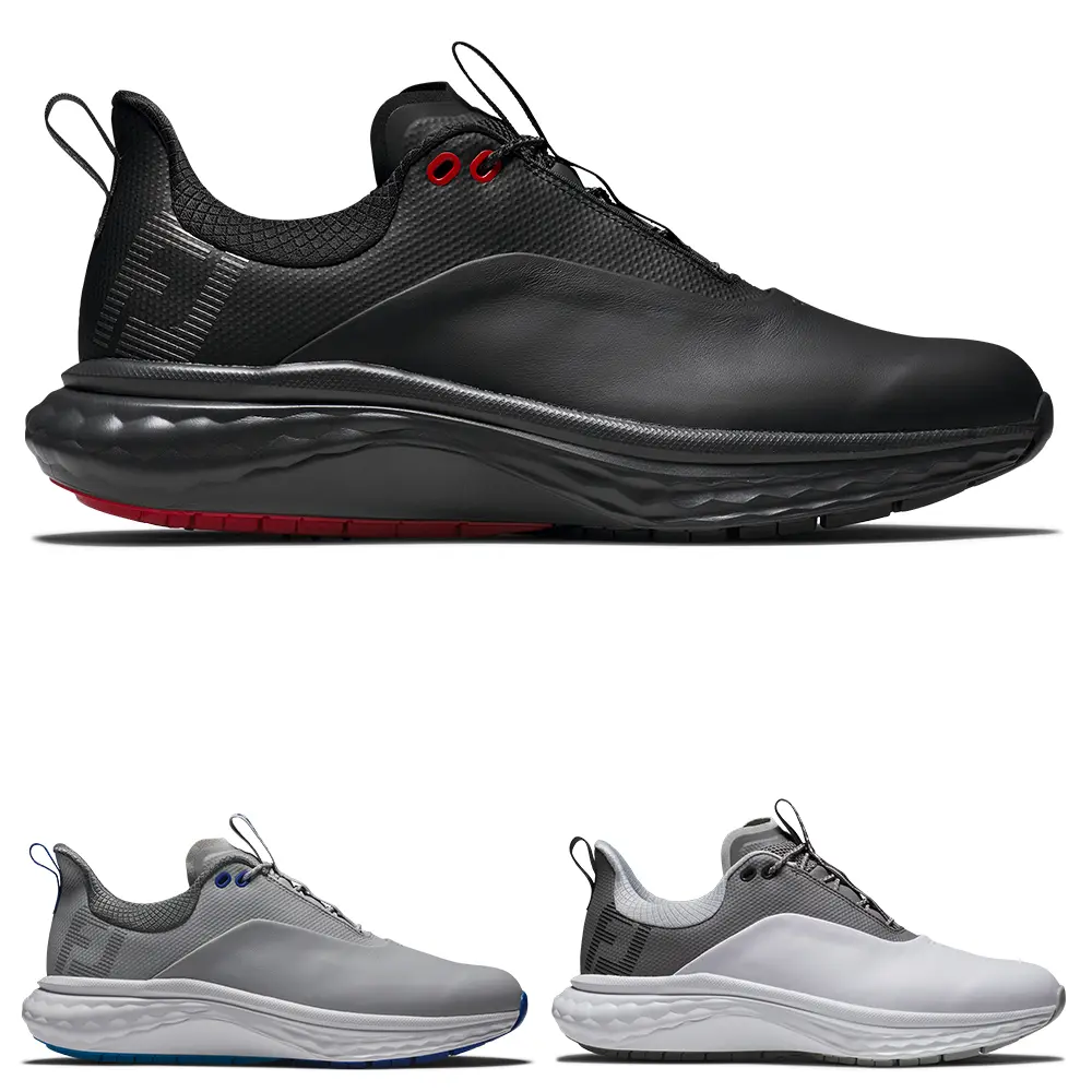 FootJoy's FJ Quantum golf shoe combines their softest ever foam cushioning with premium leather to provide maximum comfort that lasts round after round. Designed to ensure maximum cushioning, ultimate comfort, and versatile traction, the FJ Quantum shoes are packed with technology to enhance your game. Available in three fashionable colour options including added colours for this season, these spikeless golf shoes are the perfect blend of style and functionality for both on and off the golf course.