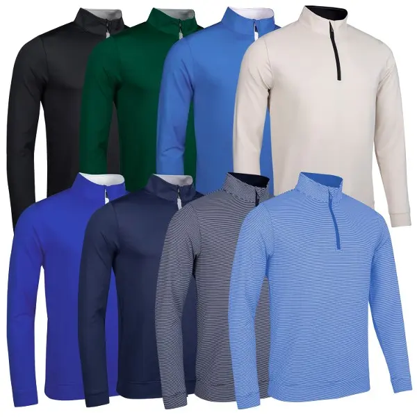 Made from a performance polyester-elastane blend, the fabric provides four-way stretch for unrestricted movement throughout your swing. The moisture-wicking yarn helps regulate temperature and keep you dry, while the tricot non-stick backing ensures a comfortable fit without clinging. A high-quality YKK zip with a chin guard adds convenience and comfort, making it easy to adjust your temperature during play.