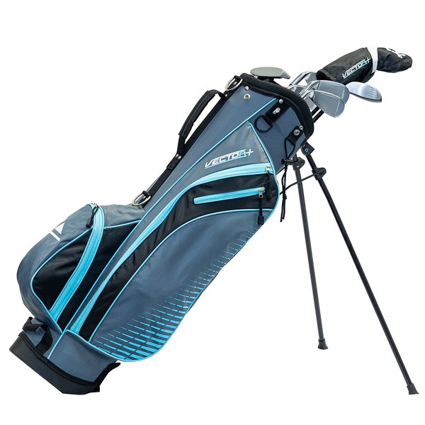 The Longridge Vector 8pc Set, which includes 6 clubs, 1 headcover, and a 7.5" Stand bag with hood, is perfect for any golf fan. A set that is ideal for gamers at any skill level. A fairway #3wood with a headcover, 4 irons (#5, #7, #9, and #SW), and a putter are included in the kit. Irons with stainless steel shafts and woods with composite graphite shafts are both available. The ladies' package includes woods, irons, and a putter with a steel shaft.