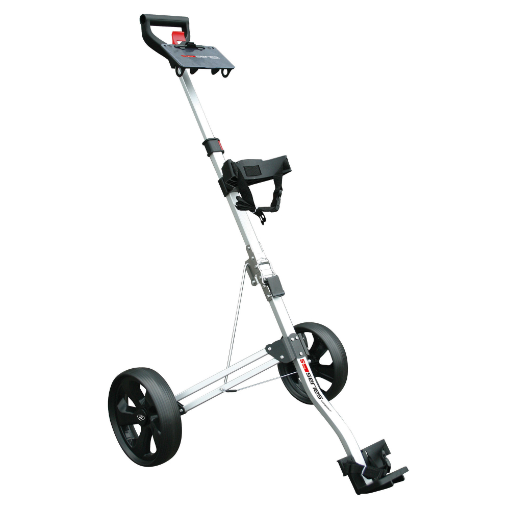 The 5 Series Compact Pull Cart is a Compact Golf Cart with collapsed dimensions of 58cm x 31cm 30cm. It's easy to fold away and takes up minimal space in the car with easier manoeuvrability.