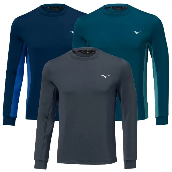 Made from a soft stretch fabric with a wicking finish, it helps regulate body temperature and manage moisture during play. The crew neck design layers easily over a polo, while the subtle Runbird logo adds a refined Mizuno finish without being overstated.