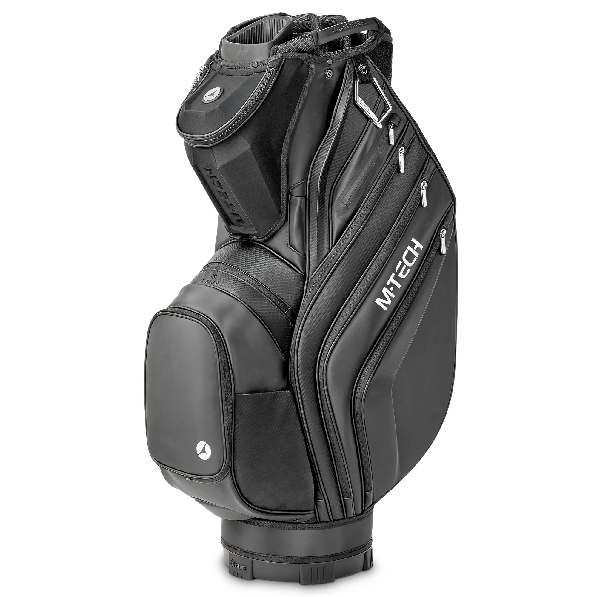 The Motocaddy M-Tech Golf Cart Bag combines premium materials with an innovative carbon design and offers a wide range of features. Although it is designed to complement the M-Tech trolley, the bag is equipped with an EASILOCK-compatible base, allowing it to fit on any Motocaddy trolley.