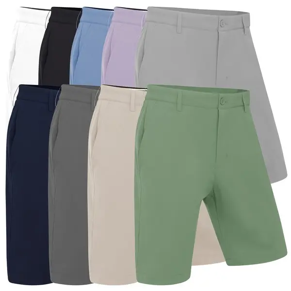 These golf shorts are constructed from a soft-touch, textured polyester fabric that is durable and easy to wear in summer conditions. A water-repellent finish helps protect against light showers and damp grass, while the branded internal waistband gripper keeps your polo neatly in place during play. Practical pocket placement and belt loops make them a reliable choice for regular rounds. The fit is true to size and suits golfers who prefer a sharper silhouette.