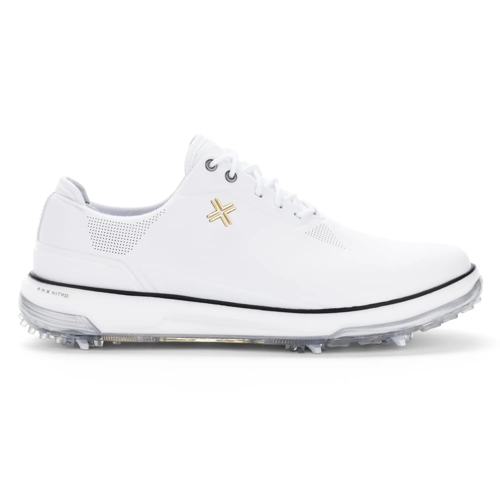 Featuring Payntr’s advanced performance technology, the Eighty Seven SC is built for golfers seeking superior energy return and underfoot responsiveness. The CLARINO Trivela microfiber upper offers lightweight durability and comfort, while the ARIAPRENE tongue and bootie design deliver excellent foot lockdown and breathability. The PMXNitro+ cushioning system ensures all-day comfort, complemented by the CARBITEX GearFlex propulsion plate for enhanced power and ground control through impact.