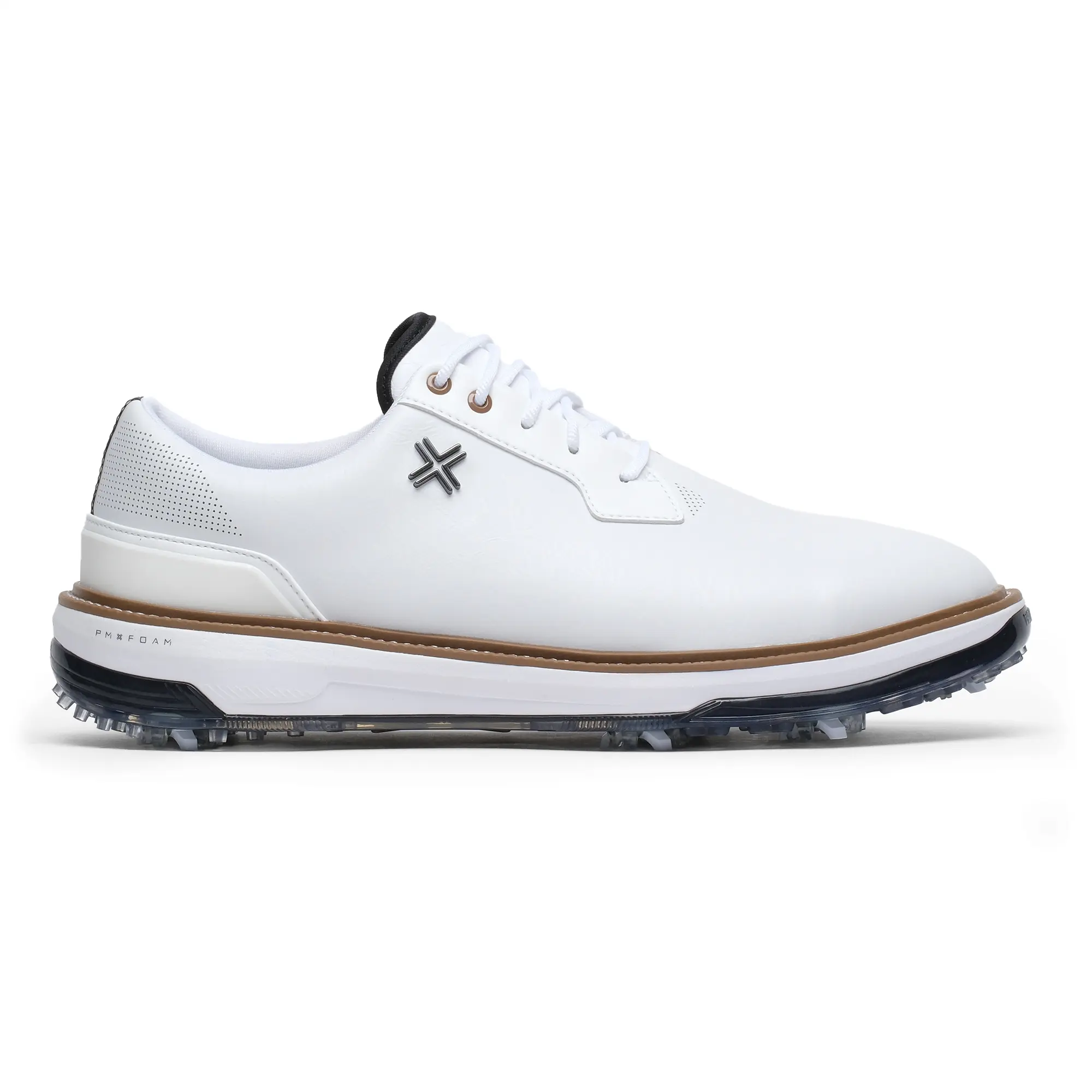 The CLARINO Trivela microfibre upper provides flexible support without feeling stiff, while the fully sealed WATERPROOF+ membrane keeps feet dry in wet conditions and allows moisture to escape. Underfoot, the dual-density PMX Foam midsole and ORTHOLITE footbed provide consistent cushioning that does not pack down over time, so the fit stays true round after round. The PMX SPEED PLT propulsion plate helps you use ground forces more efficiently, giving added stability and energy transfer through the swing.