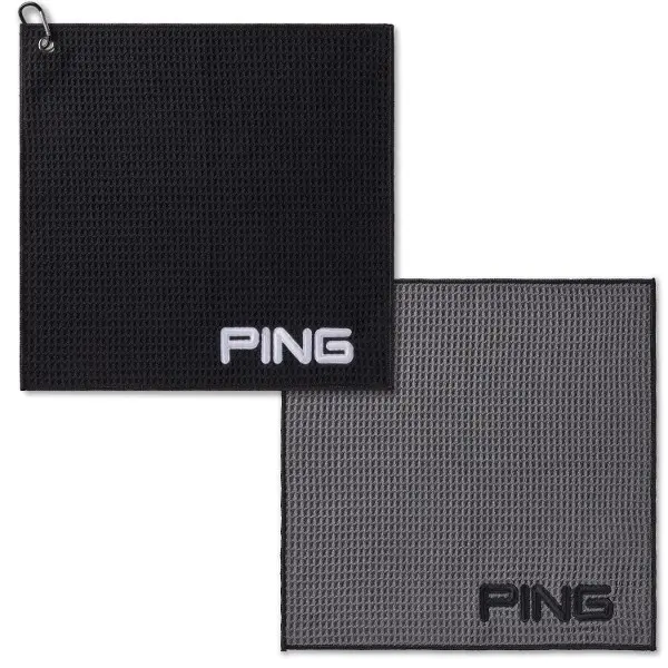 Made from super absorbent microfibre with a waffle texture, the towel removes dirt and moisture with minimal effort. The integrated carabiner clip allows quick attachment to your bag, while the embroidered Ping logo adds a clean, tour-inspired finish.