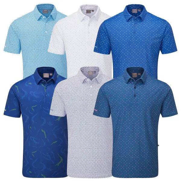 The Ping Ephron Mens Golf Polo Shirt is a lightweight printed polo shirt designed for warm-weather play. It uses Ping’s SensorCool fabric to draw moisture away from the skin, helping you stay dry and comfortable during the round. The soft, stretchy material moves easily with your game and keeps its shape well.