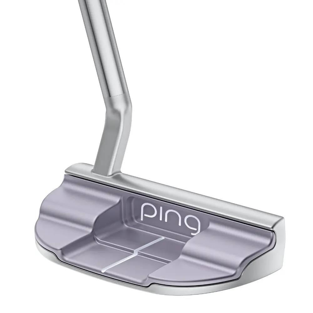 The PING G Le4 Louise is a mid-mallet putter named in honour of PING co-founder Louise Solheim. While it borrows its weighting and shaping properties from the DS72 model, it is distinguished by a flared hosel and a parallel-tip shaft designed to best suit a strong arc stroke. The construction features a cast 17-4 stainless steel body with pearl chrome plating and a forged 6061-T6 aluminium cover finished in an anodised Galactic Lilac. This multi-material design, combined with the PEBAX face insert, provides the precision and feel required for consistent performance on the green.