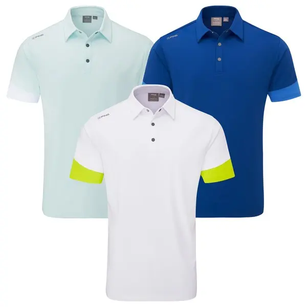 The Ping Ty Mens Golf Polo Shirt features a contrast panel design for comfort in warm conditions. It uses Ping’s SensorCool fabric to move moisture away from the skin, helping you stay dry throughout the round. The soft, stretchy material keeps the shirt easy to wear and holds its shape well.
