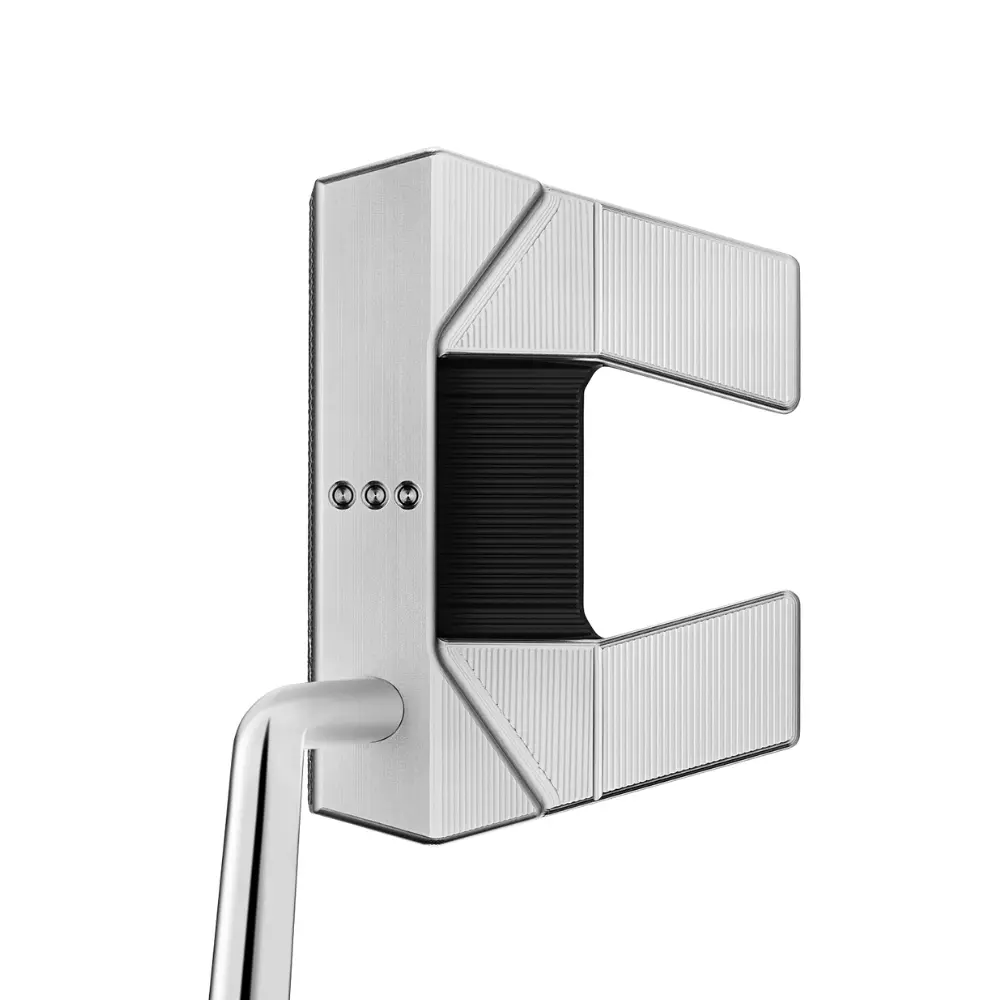 The Phantom 5 stays true to its compact mallet design, providing additional forgiveness to golfers who prefer a blade-like feel to their putts. A straighter wing angle, refined topline, and updated milled sight dots aesthetically stand out from its predecessor and inspire confidence when addressing any putt. Although the wings on this mallet perfectly frame the ball, these sight dots are one of the more subtle alignment aids across the Phantom range, suiting golfers who prefer a clean look at address. The custom-designed stepless steel shaft is engineered to minimise face rotation, perfectly lending itself to this near-face-balanced mallet and mid-single bend neck design tailored to golfers with a straighter putting stroke.