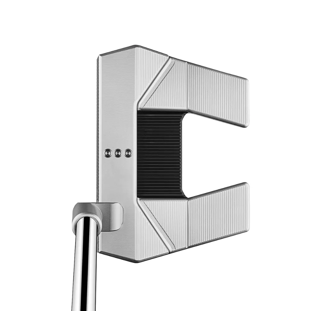 The Phantom 5.5 stays true to its compact mallet design, providing additional forgiveness to golfers who prefer a blade-like feel to their putts. A straighter wing angle, refined topline, and updated milled sight dots aesthetically stand out from its predecessor and inspire confidence when addressing any putt. Although the wings on this mallet perfectly frame the ball, these sight dots are one of the more subtle alignment aids across the Phantom range, suiting golfers who prefer a clean look at address. The I-Beam style neck design on the Phantom 5.2 is completely inspired by its incredible popularity on tour, lending itself to a subtle arc in the putting stroke, whilst the custom-designed stepless steel shaft is engineered for stability, minimising excess face rotation.