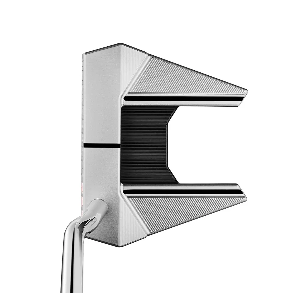 The Phantom 7 DB (Double Bend) is a high-tech mallet designed for maximum forgiveness. With its double-bend shaft, this putter is nearly face-balanced, making it the perfect choice for golfers with a straight-back, straight-through putting stroke. The extended "wings" of the head shape pull weight away from the face, drastically increasing stability through impact.