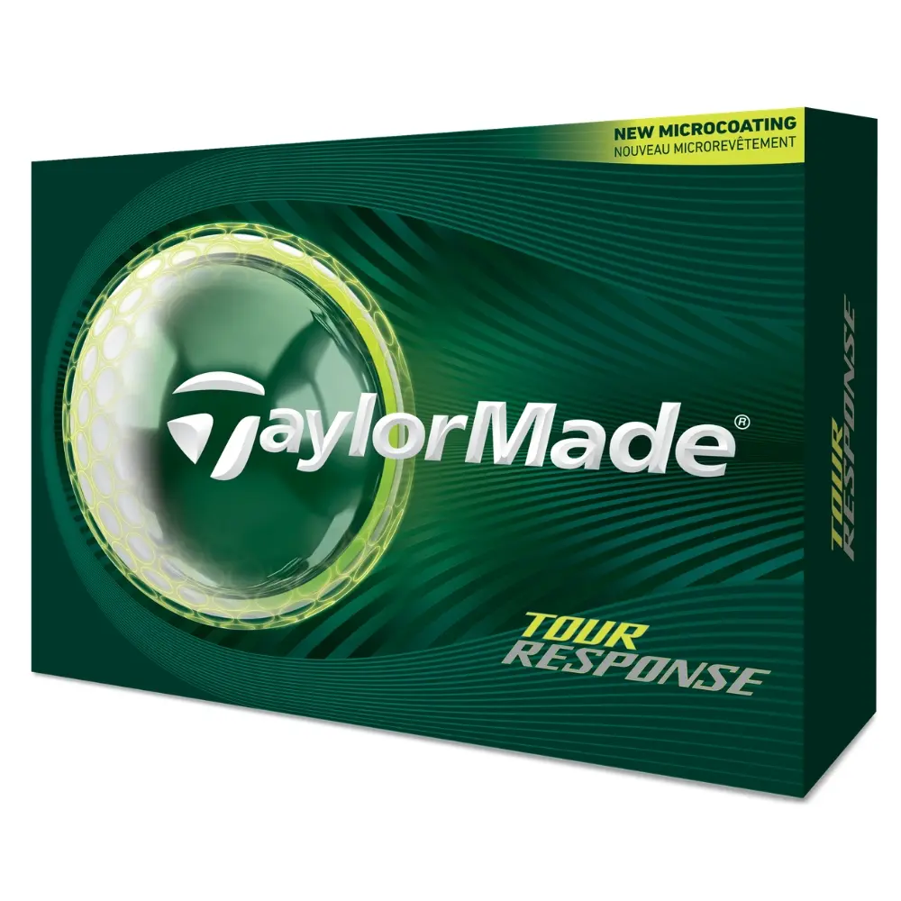 The TaylorMade Tour Response golf ball is engineered with a new 3-layer construction that features an increased core size to deliver higher ball speed and better energy transfer. It is built with a 70-compression rating and a new, softer mantle material that specifically aids in feel and spin control. To ensure maximum performance, the ball is finished with a new Urethane Microcoating, a precise paint application that minimises pooling to maintain the dimple pattern's aerodynamic efficiency for shot-to-shot consistency. This model also introduces a new soft hybrid SRI cover material that is durable and designed to significantly improve short-game spin and greenside control.