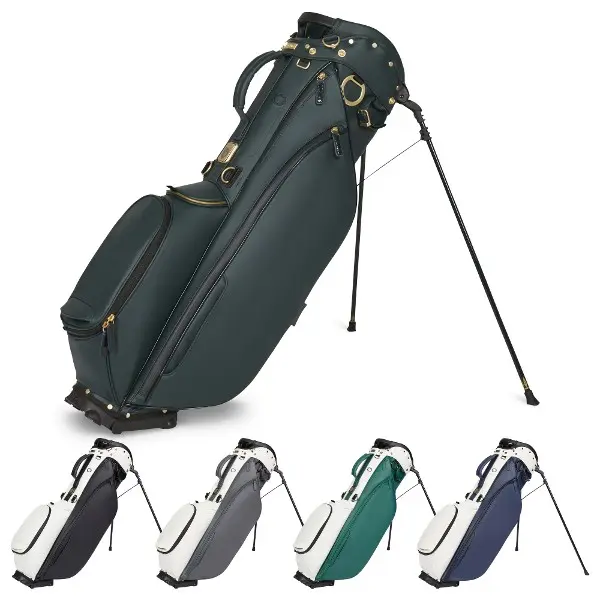 Constructed from premium synthetic water-resistant materials with quilted detailing, this stand bag offers protection in changeable conditions while maintaining a clean, classic look. The preferred 4-way top cuff with full-length dividers keeps clubs organised and easy to access, while the integrated top cuff handle improves portability when lifting or repositioning the bag.